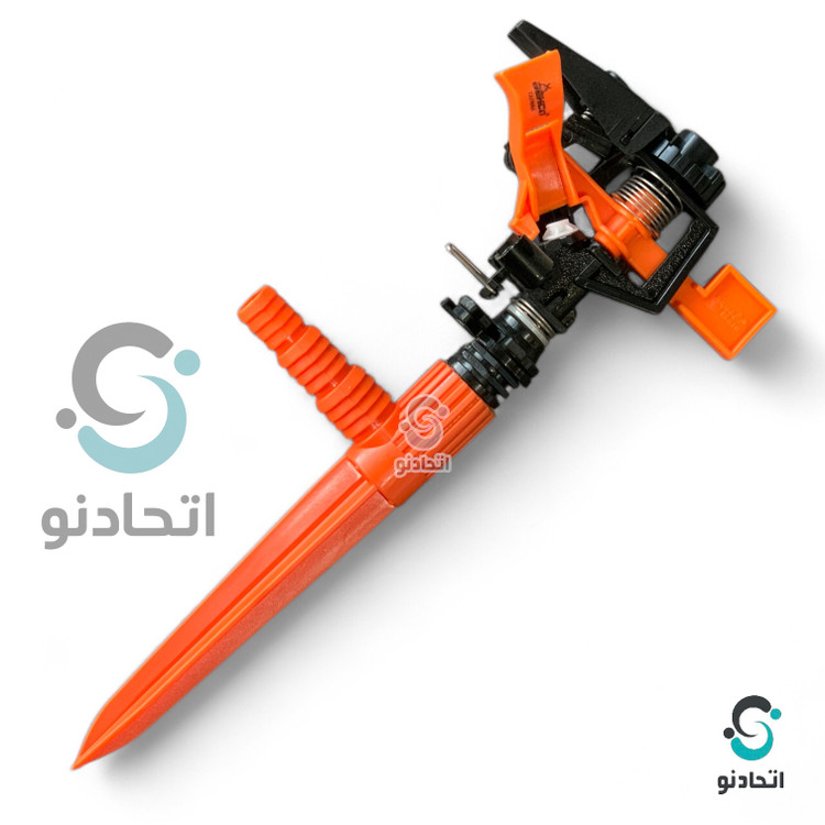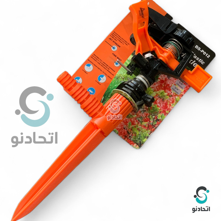 اسپرینکلر تنظیمی تایوانی ۱/۲ به همراه پایه شیلنگ خور بهکو (فواره پایه دار)( آپاش پایه دار)