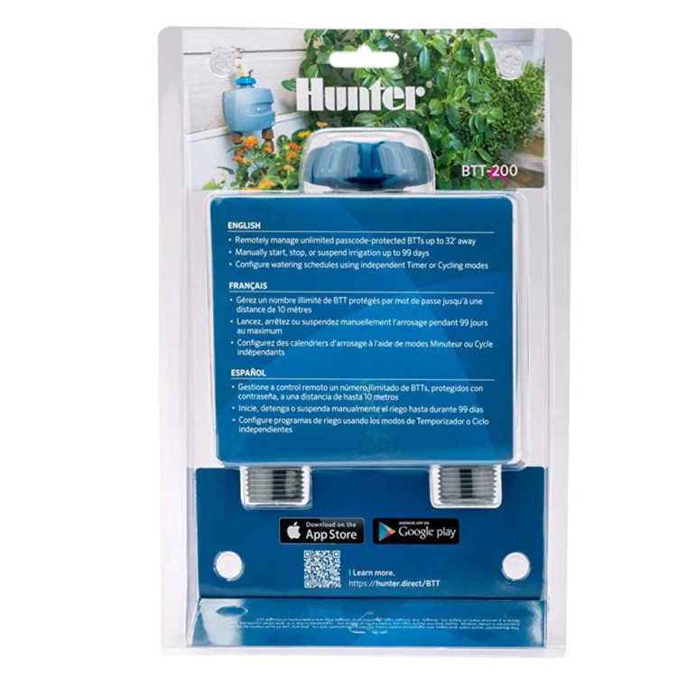 تایمر بلوتوثی 2 خروجه هانتر این تایمر با قابلیت اتصال به بلوتوث و دو خروجی مستقل از این تایمر میتوان برای آبیاری اتوماتیک انواع فضای سبز (چمن، درخت، بوته، باغچه، گلدان یا غیره) استفاده کرد. روشهای مختلفی برای آبیاری اتوماتیک وجود دارد که قیمت ارزانی هم دارند. اما اگر دوست دارید لبه تکنولوژی حرکت کنید و اطراف خود را با گجتهای جذاب پر کنید ، این مدل تایمر آبیاری هوشمند هانتر را حتماً تهیه کنید! این مدل تایمر ساخت آمریکاست و با موبایل کار میکند. در واقع اتصال بین تایمر و موبایل شما توسط بلوتوث انجام میشود. برنامه این تایمر آبیاری هم برای اندروید وجود دارد و هم برای iOS. نحوه تنظیم آن نیز بسیار راحت است.